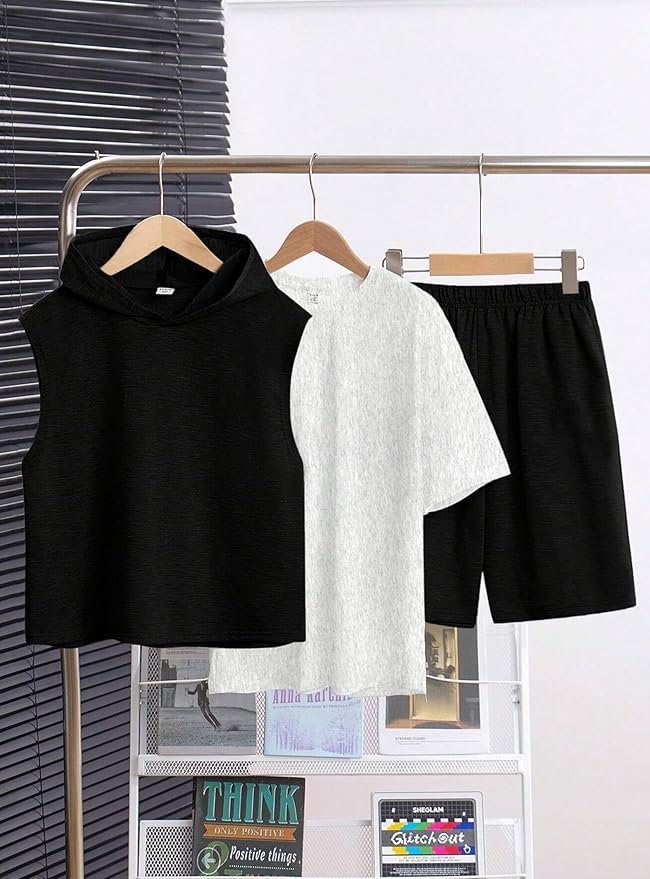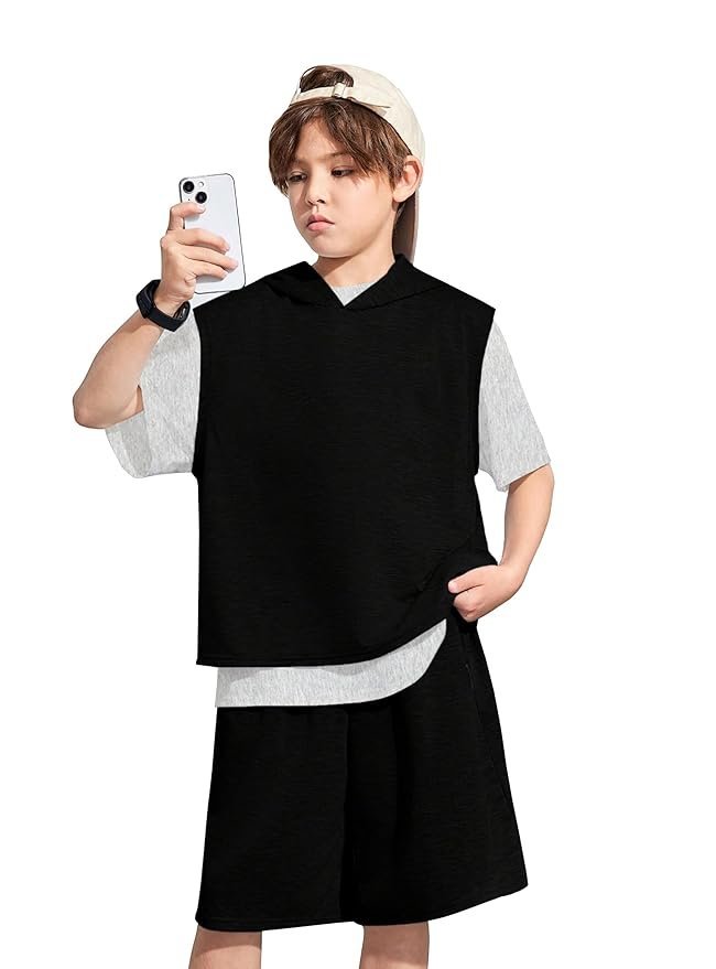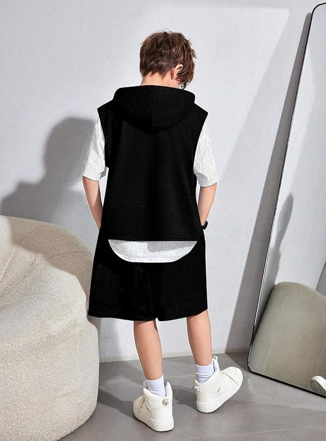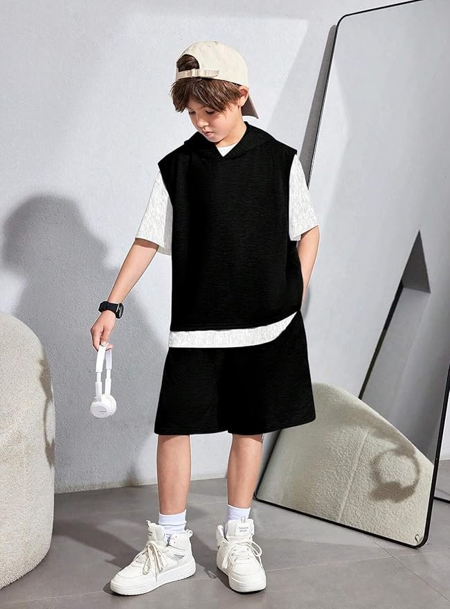 MODARUE Co-ord Set For Kids- Oversized Tshirt and Summer Shorts Combo for Boys Black